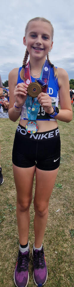 Despite having only a few hours sleep following a middle of the night return from holiday, Thaila-Jade Mason secured the long jump silver medal representing Athens at the UK School Games. The winner, Olivia Schrimshaw (Wales and Beijing), is the UK number one and the only athlete to have beaten Thaila, (UK number two) in competion this year. Thaila’s 5.61m was just sufficient to restrict Gracie Osman (England and Atlanta) to 3rd place.