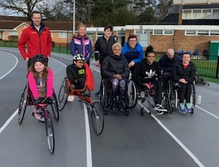 Bedford & County Athletics Club - Wheelchair Racing have been putting on twice weekly virtual sessions for our athletes during lockdown. Normally training would take place at Bedford International track and at Biggleswade AC track in Sandy in the absence of this the coaches have helped organise rollers for our athletes so they’re able to train indoors statically and for those that don’t have a roller the chair is set up on bricks in the garden and tethered. The sessions are held via Zoom and consist of a weekly shorter sprint session consisting of short burst and fast pushes and a longer hour and a half session designed to increase endurance.
