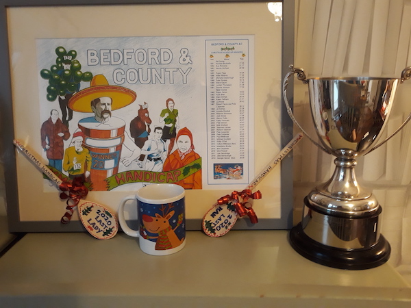 The 40th annual running of Bedford and County's Christmas Handicap race took place between 18th and 22nd December. Due to Covid restrictions, this year's edition of the race was virtual in nature. Current Bedford and County members, young and old, and alumni from as far away as Canada and Australia ran in household bubbles, or alone with only a GPS watch for company, and emailed in their results to race organizer, Tony Forrest. The race is held in memory of Pete Dancer, a long-time Bedford and County athlete and coach who passed away in 2016, after a long battle against pancreatic cancer. 86 competitors including members of Pete's family took part - the youngest was only 6 years old, and the oldest were in their seventies. Over £1700 was raised for Pancreatic Cancer UK, and this year's results were announced via Zoom. It isn't too late to make a donation to Pancreatic Cancer if you'd like to - the Just Giving page is still open: http://www.justgiving.com/fundraising/bedfordhandicap. The virtual race had joint winners: Tenny James and Rachel Humphreys.