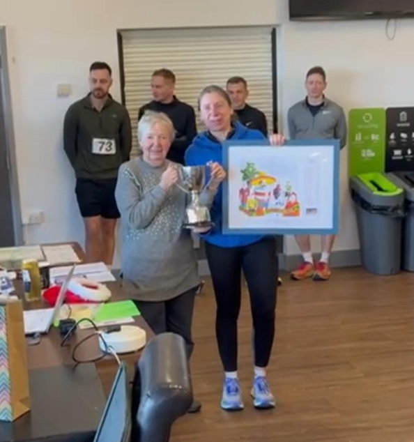 The race was won by Emma Coombes who, after going close to winning several times in the past, strode to a well deserved and very popular victory. Emma closed a 3 minute gap on the 3 ladies in front, passing them just a few hundred metres from the finish to win by 11 secs. The first man to finish was Matt Bray who set off 9 mins behind Emma but finished 32 secs behind in 5th place.